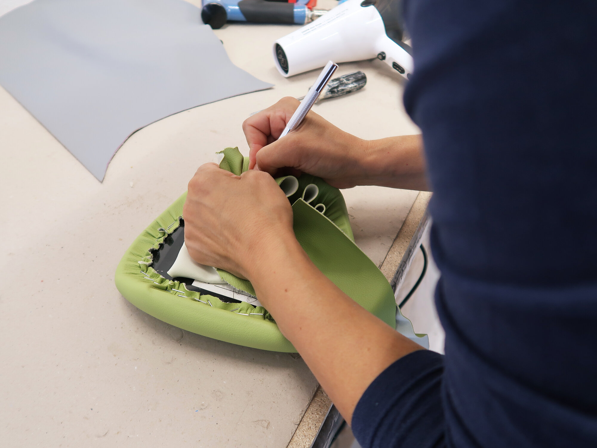 „Čalounění je o trpělivém předělávání“. To si říkám vždycky, když se něco nepovede a vracím se. Stojí to za to, vypárat švy, vytahat spony. Výsledný pocit dobře odvedené práce zahřeje víc než rychlé provedení.